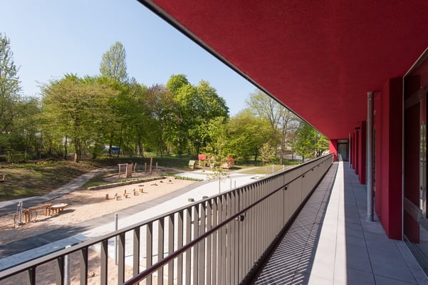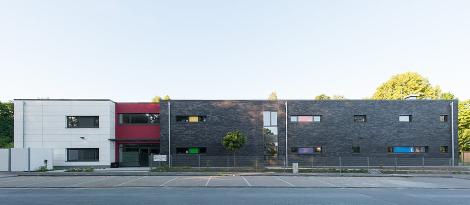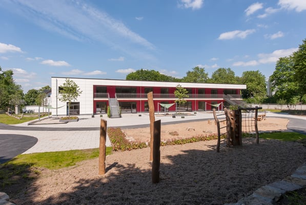 Der rechteckige Neubau bietet Räume und Einrichtung für sechs Gruppen mit 150 Kindern inklusive U2-Betreuung. Eine Besonderheit dieses Projekts war die Errichtung im Passivhausstandard. Gemäß DIN 18040-01 wurde die Tagesstätte für Kinder barrierefrei geplant: Barrierefreie Zugänge, ein Aufzug, barrierefreie WC-Anlagen und Wickelbereiche ermöglichen die Betreuung von körperbehinderten Kindern und erhöhen zusätzlich den Komfort für alle Kinder, Erzieherinnen und Erzieher. Die Kindertagesstätte Ehrenhainstraße ist Musterkindergarten für die Stadt Wuppertal, festgestellt durch den Gestaltungsbeirat der Stadt.